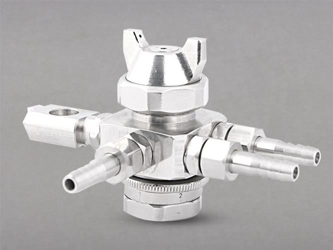 在应用于精细涂覆领域时,双流体喷嘴具有一些特殊的优势。例如,在制造电子元器件时,需要对小尺寸元器件进行涂覆以保证其性能和可靠性,这时传统的涂覆方法常常难以满足要求。而使用双流体喷嘴则可以产生非常细小的液滴,并且控制精度高,从而实现高质量的精细涂覆。此外,双流体喷嘴在许多工业生产和科学研究领域中被广泛应用,如食品加工、医药制造、化妆品生产、废气处理等领域。由于其高效的雾化效率和良好的均匀性,它已经成为了许多工业生产中必不可少的设备之一。